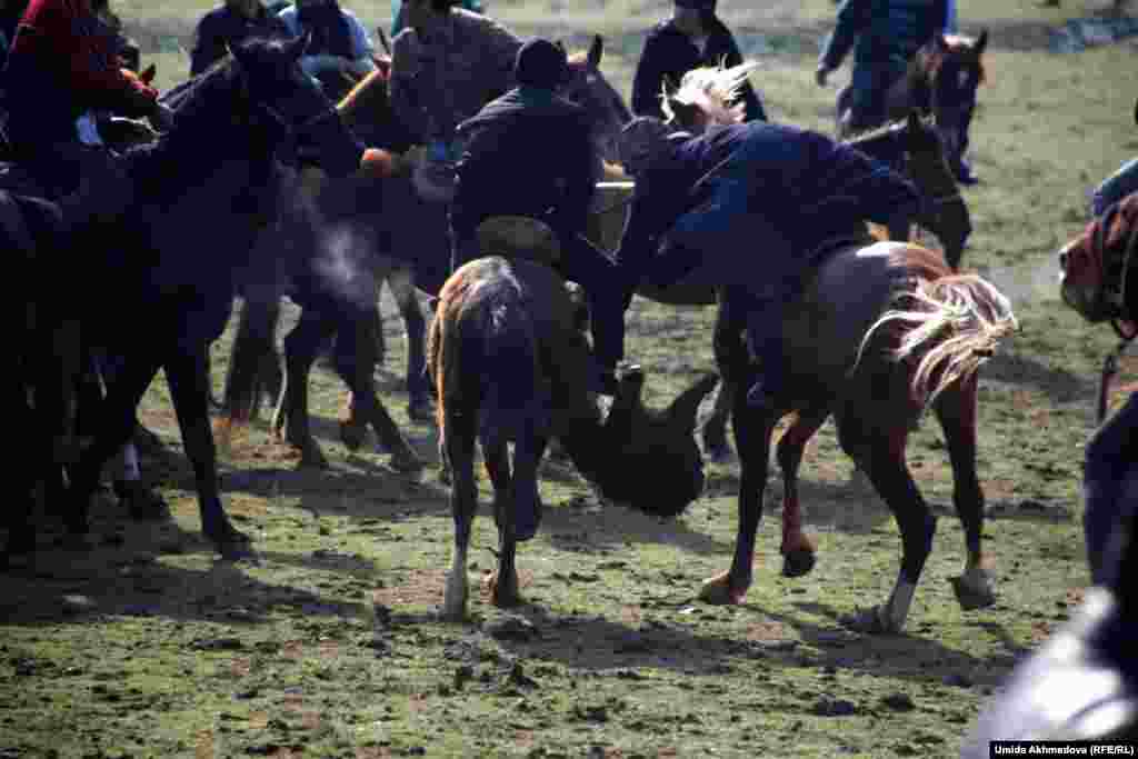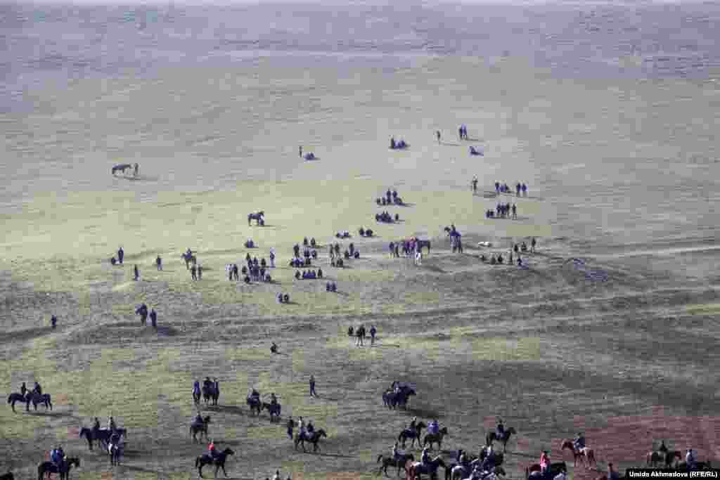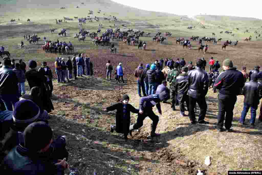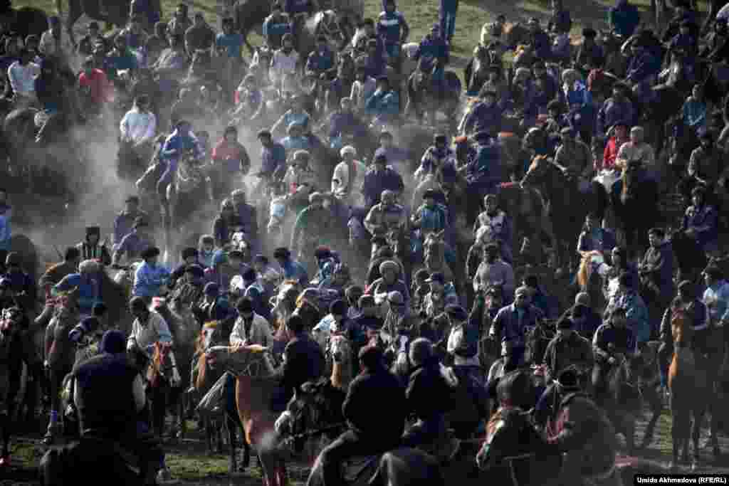 Сәмсерек ауылындағы көкпарды тамашалауға жас та, кәрі де жиналды.