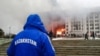 Алаңның көше жақ бетін полиция қоршауға алыпты. Арнайы жасақ киімін киген бір топ адам автобусқа отырып кетіп бара жатты.
