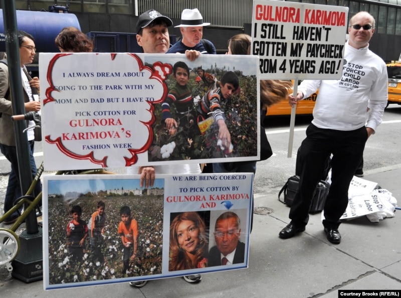 Өзбекстанда балалардың мәжбүрлі түрде мақта жинауға қатыстырылуына наразылық танытқан осы жиырма шақты адам Өзбекстан президентінің қызы Гүлнара Каримованың сән үлгілерін көрсетуге келісім берген мейрамханаға да наразылық білдірді.